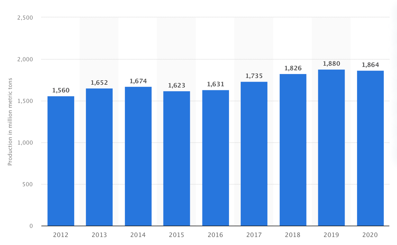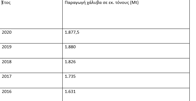 -Εξέλιξη της παγκόσμιας παραγωγής χάλυβα από το 2012 ως το 2020