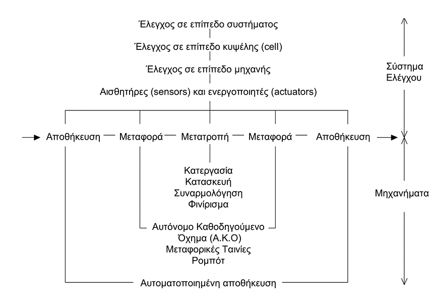 - Το σύστημα διαχείρισης και αποθήκευσης υλικών (material handling and storage system), το οποίο επιτελεί τις παρακάτω λειτουργίες: