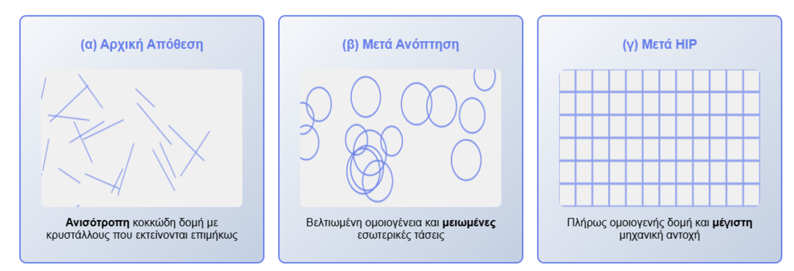 Αυτή η ανομοιογένεια καθιστά απαραίτητες τις μετακατασκευαστικές θερμικές κατεργασίες, όπως είναι η ανόπτηση και η ισοστατική θερμή πίεση (HIP). Οι διαδικασίες αυτές είναι κρίσιμες για διασφάλιση ομοιογένειας, εξάλειψη υπολειμματικών τάσεων και βελτίωση μηχανικής αντοχής. Μόνο μέσω αυτών των κατεργασιών τα ναυπηγικά εξαρτήματα εγγυώνται την απαιτούμενη αξιοπιστία σε ακραία δυναμικά φορτία και διαβρωτικά περιβάλλοντα, πληρώντας τις αυστηρές προδιαγραφές των διεθνών νηογνωμόνων.